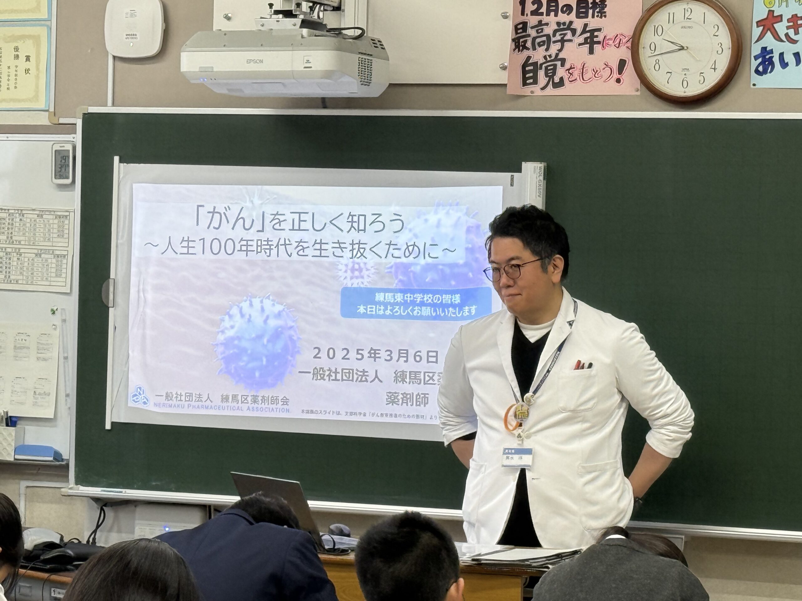 中学校にて「がん教育」の授業を担当し、生徒の皆さんと一緒に“がん”について考える時間を持ちました。