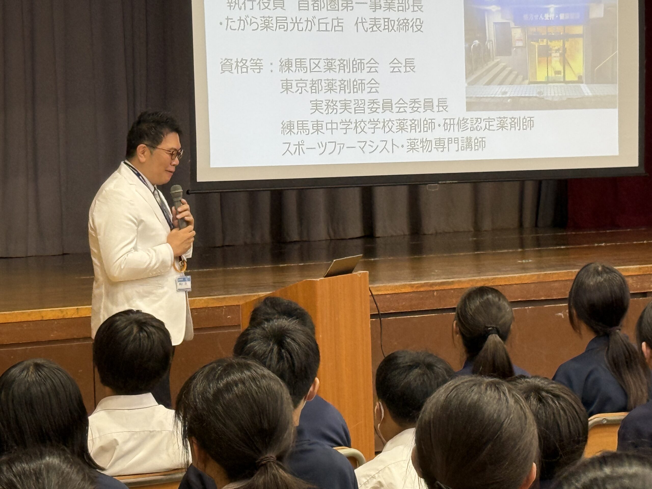 都内薬科大学にて、地域薬局の魅力と活動をお話しする機会を頂きました。結びに「何かできるようになった自分が社会に対して何をなすべきかを常に自分に問い続けていることが重要」と、今の想いを伝えました。