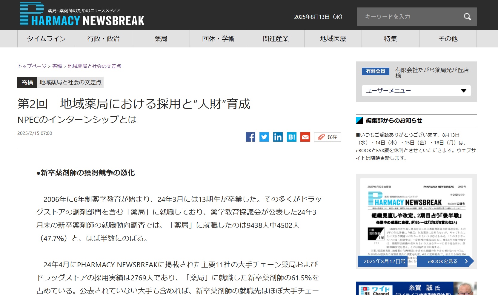 この連載は、次世代薬局経営者コンソーシアム(NPEC)の発起人たちによる寄稿です。今回は当薬局の代表による寄稿です。