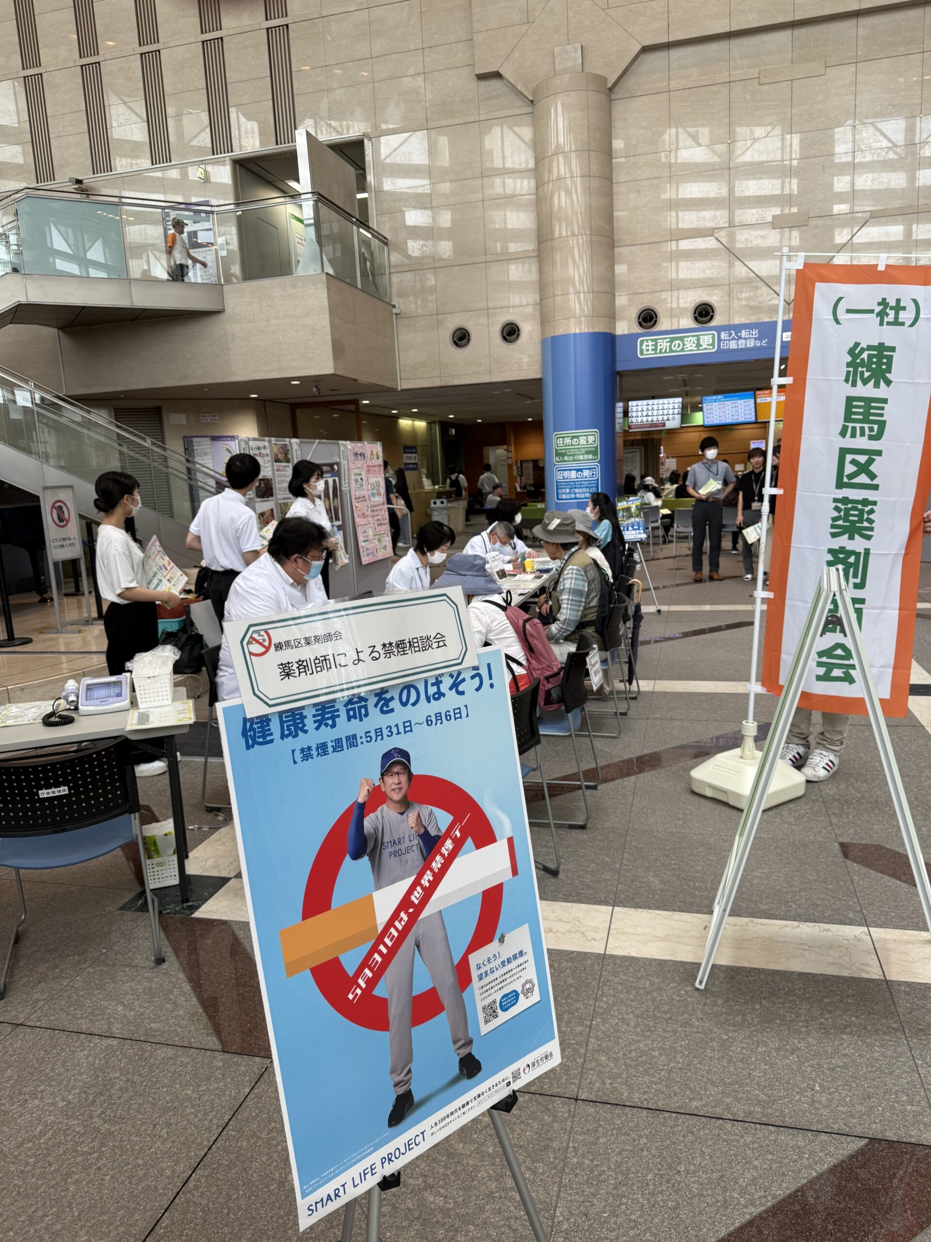 練馬区薬剤師会が主催する区民向け禁煙相談会🚭に参加しました。多くの区民の方が相談ブースに立ち寄って頂き、禁煙や受動喫煙防止のお話を聴いていただきました。
